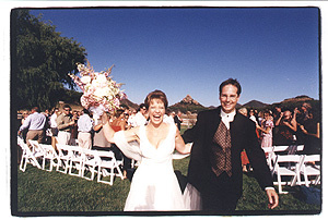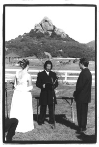 The Wedding of Jim and BrendaOn August 21, 1999 we were married at Saddlerock Ranch in the mountains above Malibu, California. The ceremony was performed by Dr. Christian Hart, a close friend of ours. The following is the text and pictures of the ceremony. The photos were taken by Joe Buissink.